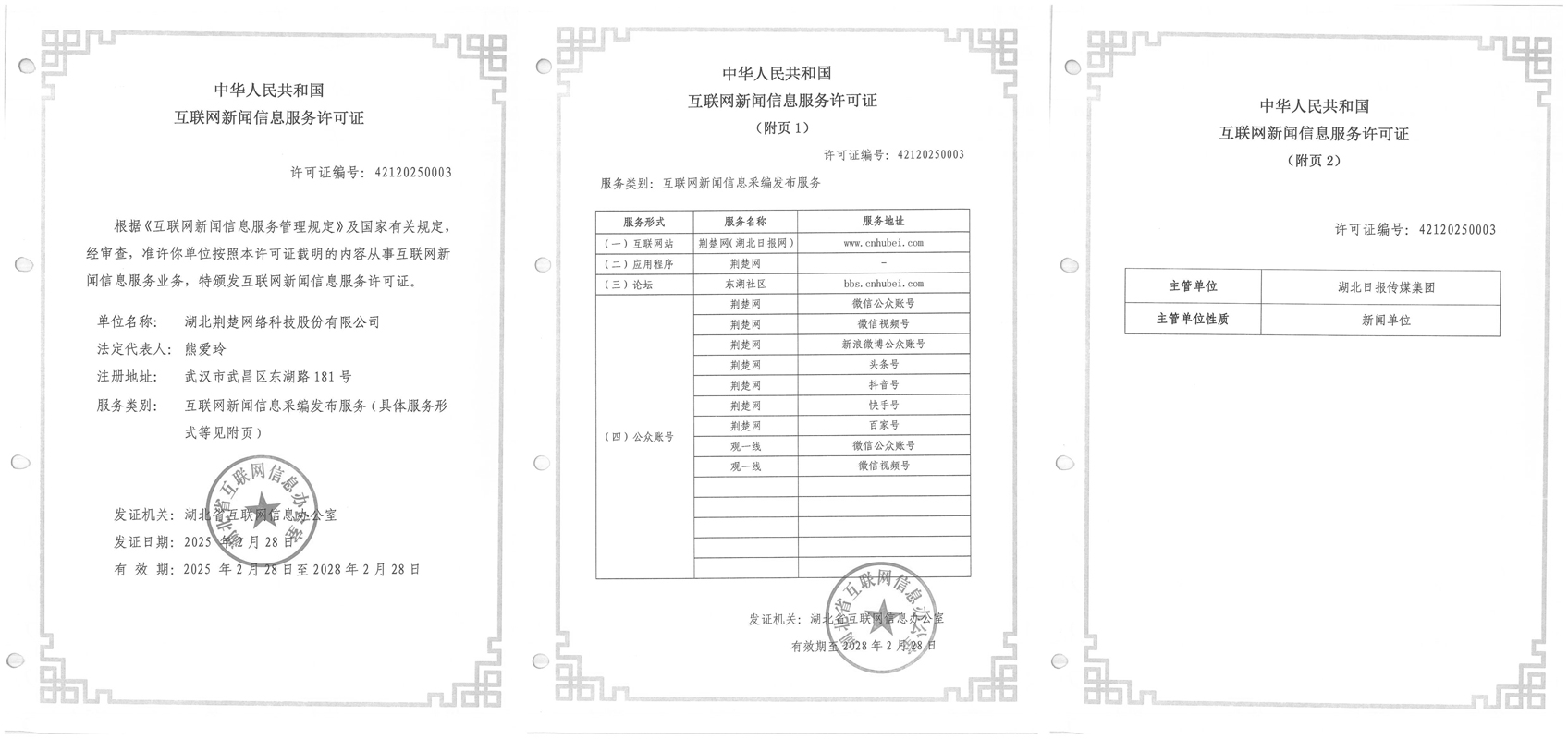 互聯(lián)網(wǎng)新聞信息許可證 4212025003 -