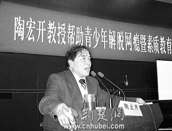 一襲并不時尚的米色風衣,一套普通的深色西裝,中等身材,高額闊臉,面色健康,頭發(fā)略有花白。快人快語,不時夾雜幾句“Yes”“No”,講到激動處有些口吃。這便是“青少年網(wǎng)絡愛心大使”、59歲的華中師范大學特聘教授陶宏開。從間接了解,到直接接觸,從報告會、座談會,到面對面采訪,連日來,記者就這樣走近陶宏開——
