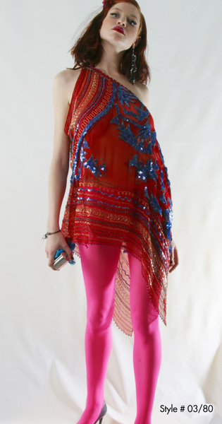 現年63歲的Zandra Rhodes,是英國乃至世界時裝界舉足輕重的人物,她所設計的朋克時裝在上個世紀70年代曾經風靡一時,并曾為Jackie Onassis, Diana Ross, Diana王妃設計造型。后來,隨著中性色調的流行,她用色鮮明、圖案大膽的設計風格逐漸淡出時裝舞臺;但是,在進入本世紀之后,新一代的年輕人又開始欣賞起她獨特的品位。