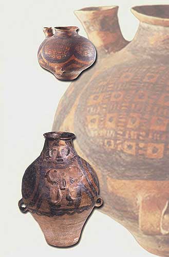 彩陶帶嘴陶壺:水器(上,高25厘米)