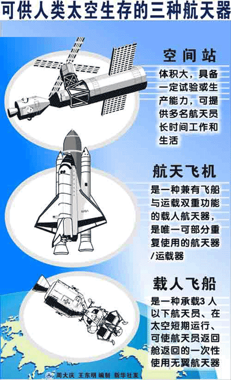 圖表:可供人類太空生存的三種航天器