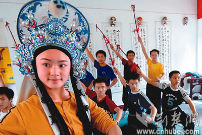 經(jīng)過(guò)3年的精心編排,武漢市黃陂區(qū)楚劇團(tuán)昨日將新編大型楚劇《少年花木蘭》搬上舞臺(tái)。該劇反映少年花木蘭立志報(bào)國(guó)、熱愛(ài)家鄉(xiāng)的情懷,將成為青少年教育的生動(dòng)教材。這是排練時(shí)的情景。