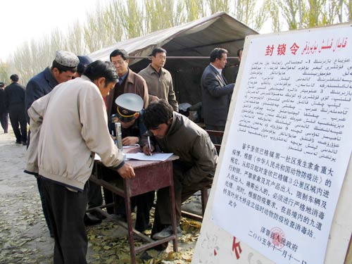 工作人員在新疆澤普縣奎依巴格鎮(zhèn)防疫檢查站登記進出車輛(11月12日攝)