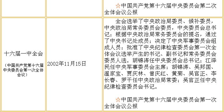 中共十六屆歷次中央全會(huì)