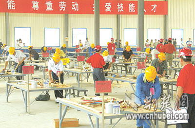 荊楚網(wǎng)(楚天都市報(bào)) (記者 黃宏 通訊員 鄒清選 攝影記者 劉中燦) 鑿子叮叮當(dāng)當(dāng),刨屑紛紛揚(yáng)揚(yáng),27名木工各自做著同樣的木隔扇———這一幕,并非出自哪個(gè)木工廠,而是湖北省首屆建筑業(yè)百萬農(nóng)民工技能大賽的現(xiàn)場。