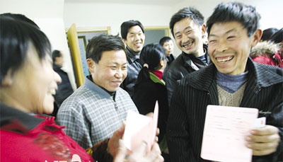 農(nóng)民工昨日領(lǐng)到我市勞動部門預先墊付的工資。 三峽商報記者李風 攝