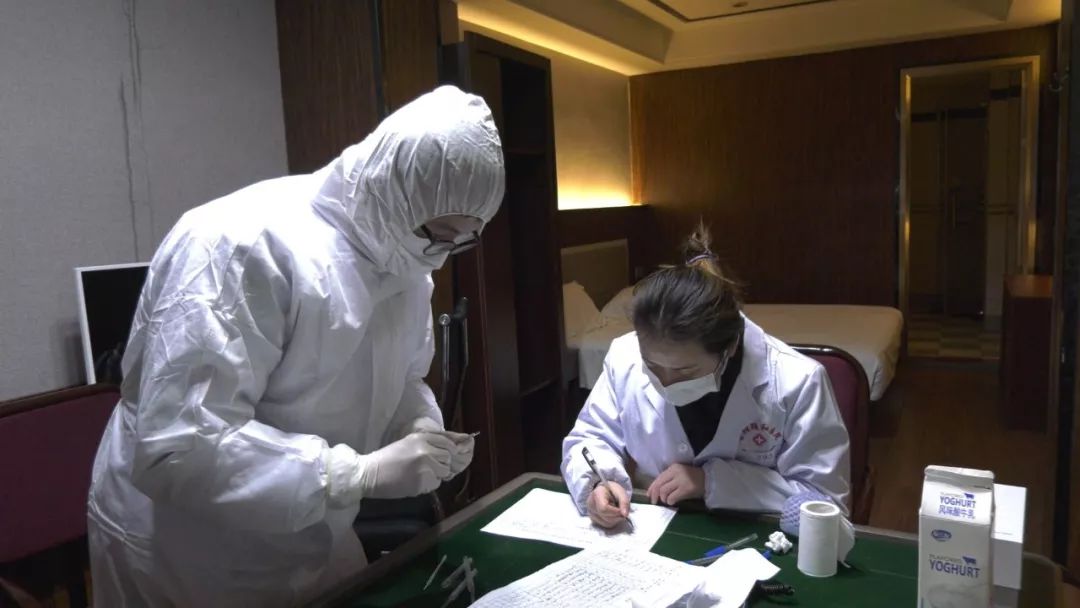 所有的物資由縣防控指揮部統(tǒng)一調(diào)配,每天上午和下午疾控中心的工作人員,對(duì)房間、走廊進(jìn)行消毒,保證衛(wèi)生。醫(yī)務(wù)人員每天上午、下午、晚上三次給病人測(cè)量體溫,觀察身體反應(yīng),生活上一日三餐、開水都送到門上,保障他們生活比較舒適,能安心進(jìn)行觀察,保證他們身體健康。