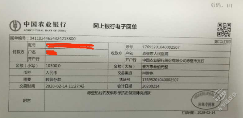 為罹患白血病患者募捐、積極參加各類公益活動……童志明每次在赤壁釣友俱樂部微信群里發(fā)起的倡議,都能得到迅速響應。這次也沒例外,短短幾天就募集資金10300元。2月14日,趕在寒潮之前,老童把善款匯入醫(yī)院賬戶,希望能為醫(yī)護人員帶來一些溫暖。