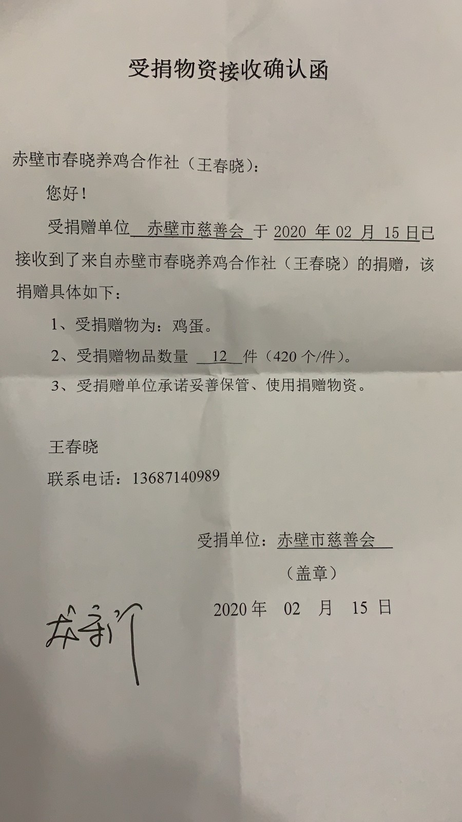 據悉,赤壁市意豐農業(yè)合作社捐贈大米3噸,赤壁市春曉養(yǎng)雞合作社捐贈雞蛋5040枚,赤壁市浚龍養(yǎng)雞場捐贈雞蛋7200枚。