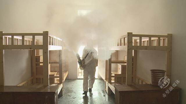 機(jī)電學(xué)校集中隔離點(diǎn)是赤壁市較早清空的隔離點(diǎn)之一。3月10日,記者來到機(jī)電學(xué)校,疾控中心的工作人員正在這里開展消殺工作。