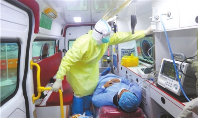 市直工作隊(duì)書記李波,多次承擔(dān)危重病人轉(zhuǎn)運(yùn)任務(wù),與患者在狹小的空間密切接觸;