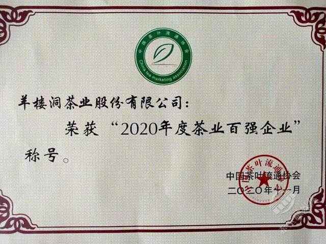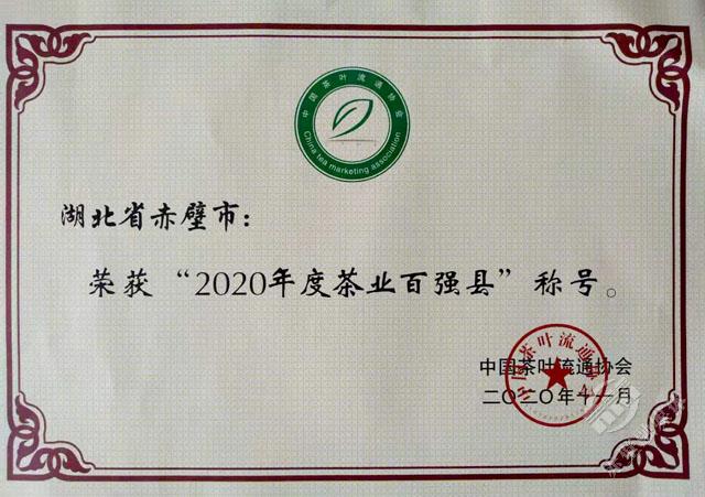 11月18日,第十六屆中國茶業(yè)經(jīng)濟(jì)年會(huì)正式發(fā)布了2020中國茶葉行業(yè)調(diào)查的最終結(jié)果,對(duì)年度中國茶業(yè)優(yōu)秀企業(yè)、優(yōu)秀縣域進(jìn)行授牌表彰。赤壁市榮獲“十三五百強(qiáng)縣市十強(qiáng)”和“2020年度茶業(yè)百強(qiáng)縣”稱號(hào),其中“十三五百強(qiáng)縣市十強(qiáng)”中赤壁市是湖北省唯一入選的縣市,在“2020年度茶業(yè)百強(qiáng)企業(yè)”評(píng)選中,羊樓洞茶業(yè)股份有限公司成為咸寧市唯一入選的企業(yè)。
