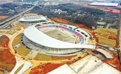 1月19日,赤壁市體育中心建設現(xiàn)場,只見場館主體結構已完成,工人們正在進行精裝修施工,停車場建設已基本完成,場館外的空地已開始綠化作業(yè)。