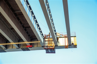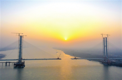 該橋南岸灘橋最后一孔50米的現(xiàn)澆箱梁已施工完畢。主跨橋梁也在不斷的實現(xiàn)合龍,目前合龍距離還剩76米。預(yù)計今年三月底實現(xiàn)合龍。