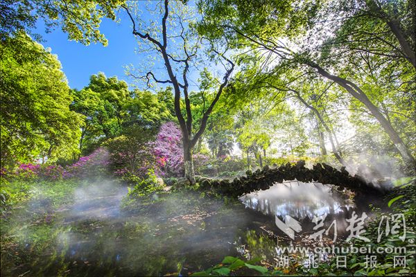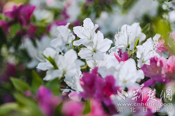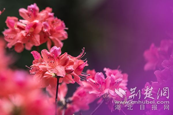 荊楚網(wǎng)(湖北日報網(wǎng))訊(通訊員陳長麗)最美人間四月天,“花中西施”杜鵑接力登場成為春花主力。在武漢植物園,5萬株杜鵑恣意開放,園內(nèi)各處杜鵑簇擁枝頭,織錦堆繡,漫山紅遍,美不勝收。園區(qū)重新修繕提升了杜鵑園霧噴景觀,云霧繚繞中,萬千杜鵑燦若云霞若隱若現(xiàn),宛若人間仙境。