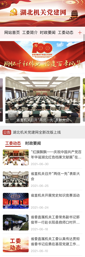 荊楚網(wǎng)(湖北日報網(wǎng))訊(記者謝頤 通訊員鄭羽嬋)在中國共產(chǎn)黨成立100周年之際,湖北機(jī)關(guān)黨建門戶網(wǎng)站湖北機(jī)關(guān)黨建網(wǎng)(http://www.hbjgdj.gov.cn/)電腦端、移動端全新改版上線。這是省委直屬機(jī)關(guān)工委積極探索智慧黨建的有效途徑,是加強(qiáng)省直機(jī)關(guān)黨建宣傳工作的重要舉措,是為黨慶生、為黨祝福獻(xiàn)上的特殊禮物。