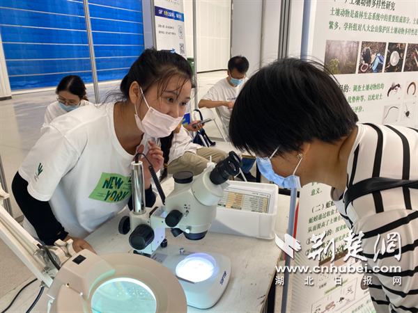 “蚯蚓是人類的好朋友。”來自中科院武漢植物園功能生態(tài)組的林小元正在展臺(tái)前指導(dǎo)市民通過顯微鏡觀察土壤和蚯蚓。她邊調(diào)試儀器邊介紹,蚯蚓是土壤動(dòng)物里最常見類群之一,它們?cè)谕寥郎鷳B(tài)系統(tǒng)中既是“消費(fèi)”者,也是“創(chuàng)造”者,它們通過取食、消化、排泄、分泌和挖掘洞穴等活動(dòng)對(duì)土壤產(chǎn)生重要影響,被稱為“土壤工程師”。