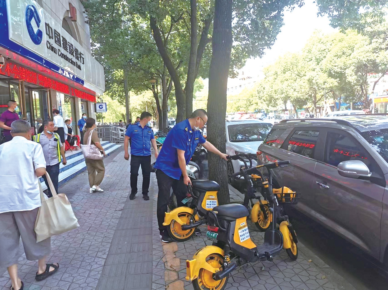 十幾分鐘后,一名頭戴小黃帽、身穿印有“十堰市共享單車運(yùn)維”字樣綠色馬甲的工作人員來到現(xiàn)場,對亂停放的車輛一一拍照解鎖,然后將它們挪到指定停車區(qū)域。這名工作人員告訴記者,他屬于美團(tuán)公司,但是可以負(fù)責(zé)將此處的共享單車都整理好。他介紹,目前十堰的三家共享單車企業(yè)(美團(tuán)、青桔、哈羅)在路面運(yùn)維方面建立了合作機(jī)制,一名工作人員負(fù)責(zé)一個區(qū)域,當(dāng)某個區(qū)域接到共享單車亂停放的線索后,該片區(qū)的工作人員就會到場對該區(qū)域的共享單車一并進(jìn)行整理,這樣可以優(yōu)化人員配置,提高工作效率。