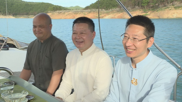 “采仙山之靈氣,納碧水之潤澤”。在碧波蕩漾的太極湖上,武當文化學者與愛好者圍繞煙波浩淼的丹江口水庫、舉世矚目的南水北調(diào)中線工程、72峰朝大頂?shù)莫毺仄嬗^、沉睡于漢水之下的均州古城、國學經(jīng)典《道德經(jīng)》,看老子像、眺天柱峰、尋水下城,品茶論道、談古論今,呈現(xiàn)出“泛舟江湖”的唯美意境。