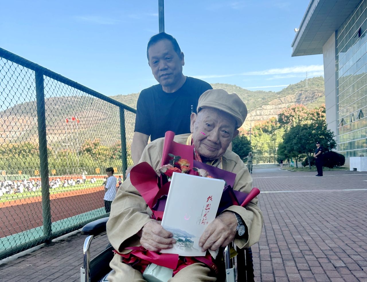 98歲老兵庫芳禹對(duì)《致敬英雄》報(bào)道集愛不釋手。呂鑒蕾 攝
