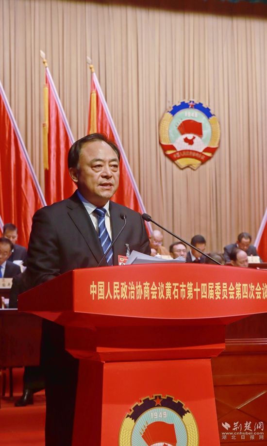 2月6日,中國(guó)人民政治協(xié)商會(huì)議黃石市第十四屆委員會(huì)第四次會(huì)議在黃石磁湖劇院開幕。中共黃石市委書記郄英才講話。