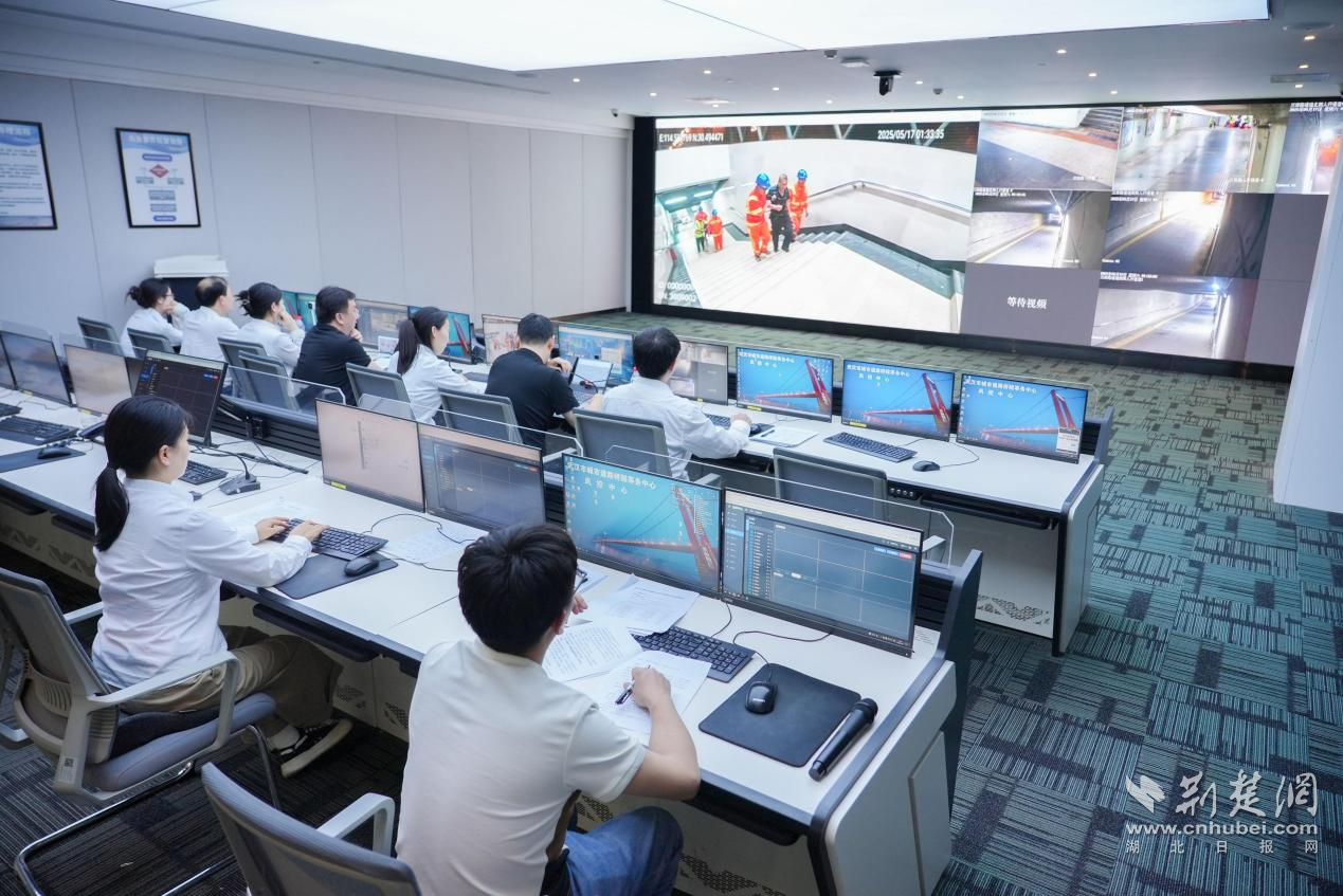演練模擬了進(jìn)入5月以來,武漢連續(xù)遭遇強降雨,江河湖泊水位上漲,部分城市橋梁橋面、隧道及通道出現(xiàn)積水、倒灌和群眾被困等緊急情況,指揮中樞設(shè)在武漢市城市道路橋隧事務(wù)中心風(fēng)控中心。