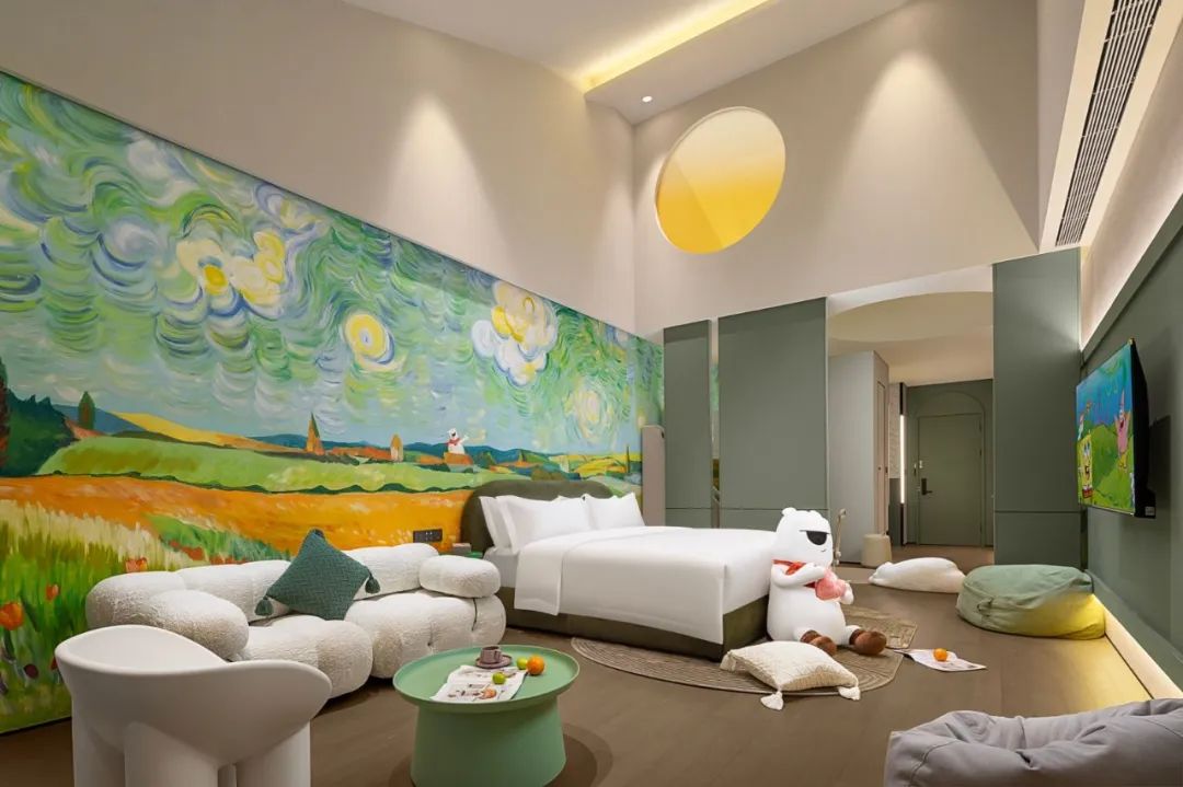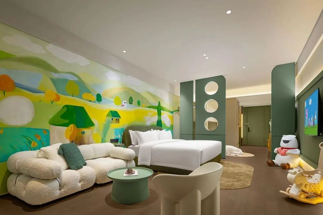 29間主題客房承包全家歡笑,從蘑菇王國到兔子先生,從綠野仙蹤到夢樂島,每一扇門后都藏著無盡的驚喜與想象??头烤拇蛟鞂偻け诋?,仿佛住進絢爛多彩的童話世界。