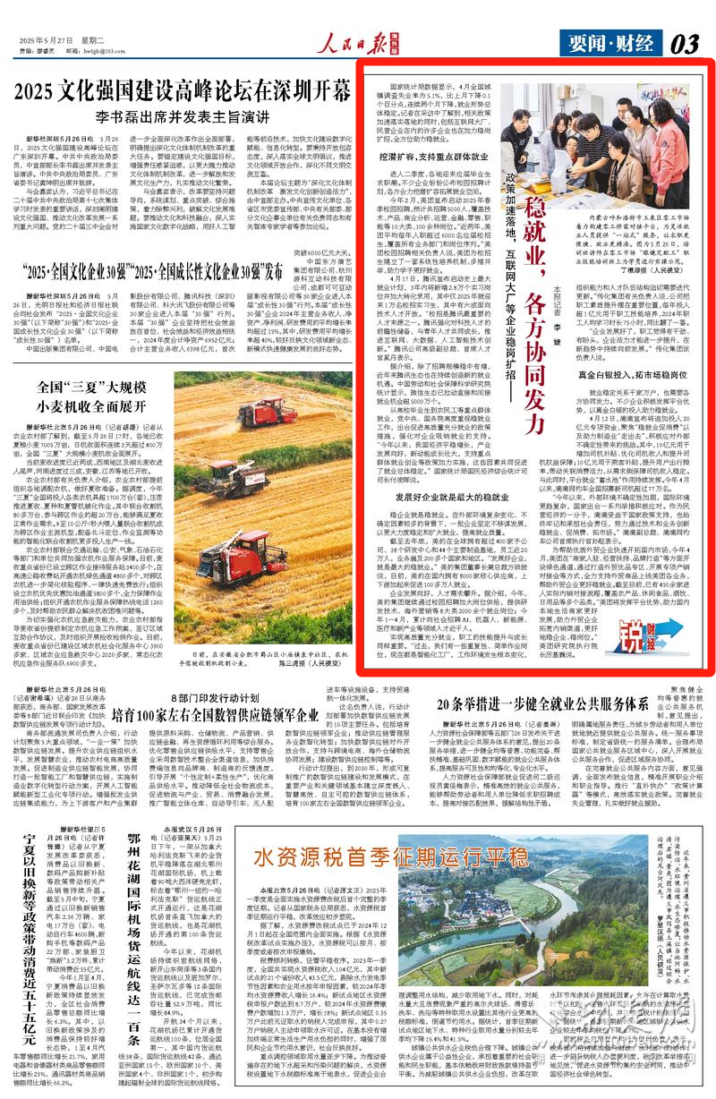 《人民日?qǐng)?bào)海外版》在文章中提到,穩(wěn)企業(yè)就是穩(wěn)就業(yè),不少企業(yè)積極發(fā)揮平臺(tái)優(yōu)勢(shì),以真金白銀的投入助力穩(wěn)就業(yè)。美團(tuán)2025年春季預(yù)計(jì)校園招聘5000人,覆蓋10大類(lèi)、100余種崗位,助力學(xué)子更好就業(yè);為了幫助優(yōu)質(zhì)外貿(mào)企業(yè)快速開(kāi)拓國(guó)內(nèi)市場(chǎng),美團(tuán)通過(guò)多種方式支持外貿(mào)商品上線(xiàn)美團(tuán)各業(yè)務(wù),幫助外貿(mào)企業(yè)更好穩(wěn)就業(yè)。