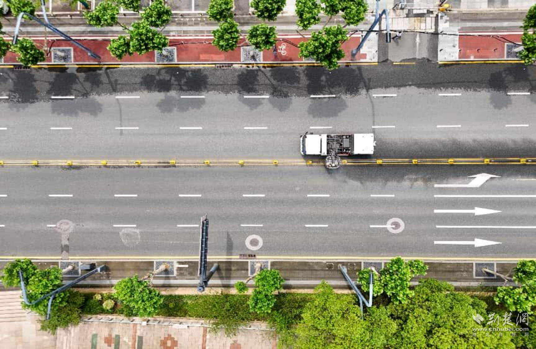 荊楚網(wǎng)(湖北日報(bào)網(wǎng))訊(記者 何婧 通訊員 費(fèi)帆 白丹 覃小玲)6月12日,武昌區(qū)臨江大道,記者在長江觀景第一臺旁看到,新能源護(hù)欄清洗車緩緩駛過,隨著機(jī)械刷頭滾動,水霧噴灑而下,不僅護(hù)欄潔白如初,連地面上的黃線也一并沖刷干凈。這樣的場景,如今在臨江大道已經(jīng)成為日常。