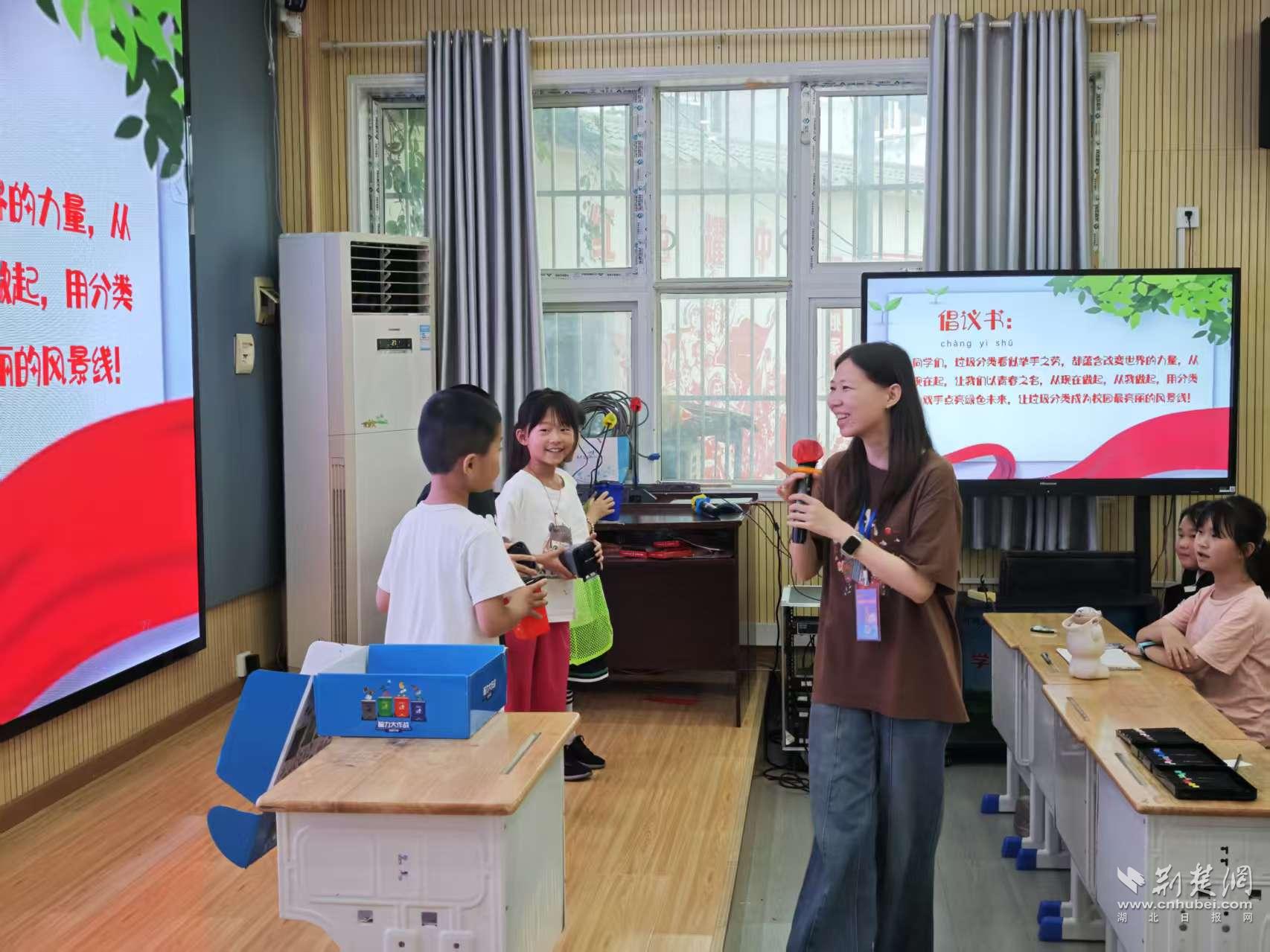 在祁家灣街“愛心托管班”上,工作人員通過視頻短片、圖文講解與紙卡互動(dòng),引導(dǎo)孩子們認(rèn)識垃圾種類,掌握分類規(guī)則。教學(xué)方式寓教于樂,生動(dòng)易懂,廣受歡迎。