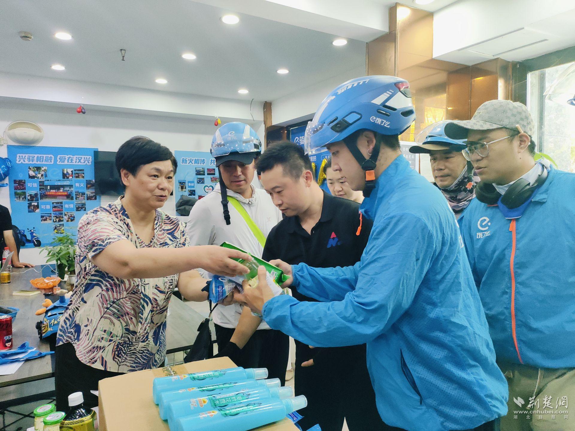 就在前一天,江漢區(qū)總工會來到紅旗渠路驛站,為高溫中堅(jiān)守崗位的外賣騎手們送去綠豆、花露水、酸梅膏、冰袖等共計(jì)50份防暑物資,將清涼和關(guān)懷一并送到一線勞動者手中。