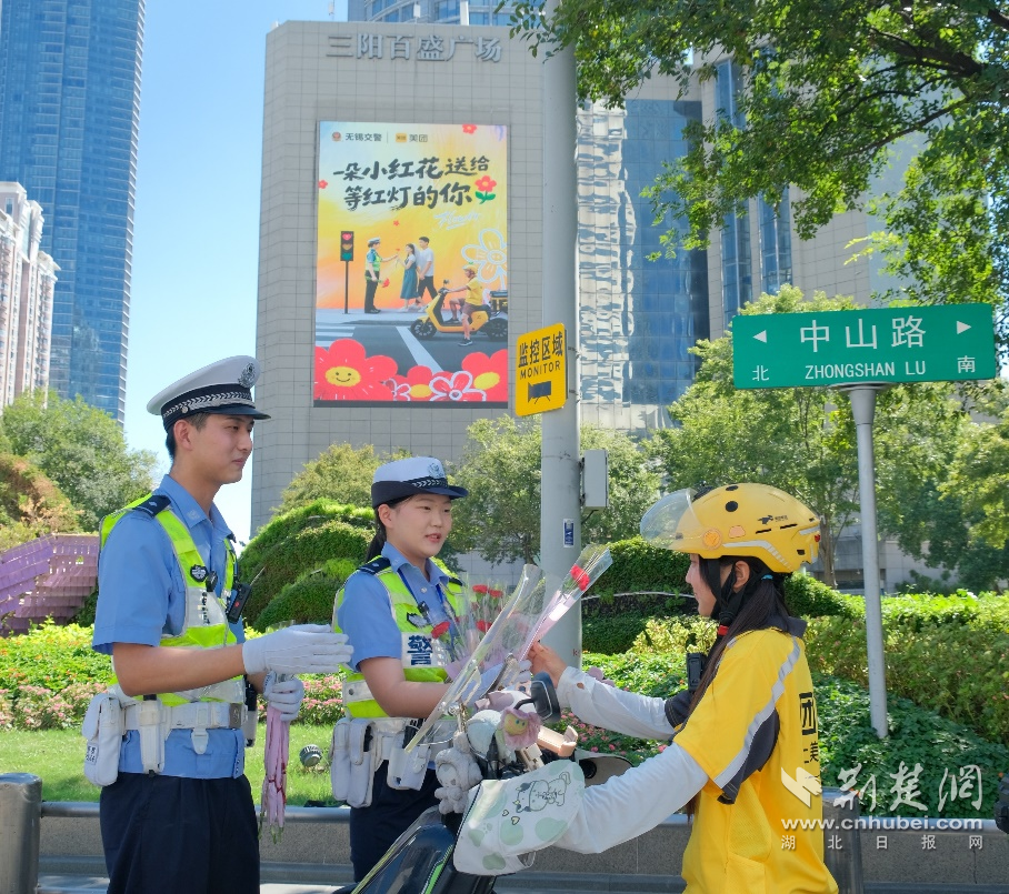 荊楚網(wǎng)(湖北日報(bào)網(wǎng))訊(通訊員小雨)8月29日七夕當(dāng)天,美團(tuán)在西寧、鄭州、蘭州、深圳、武漢等全國16座城市同步發(fā)起“送你一朵小紅花”交通安全倡導(dǎo)行動。各城市交警在十字路口、斑馬線前為遵守交通規(guī)則的騎手和市民送上鮮花及反光貼紙,傳遞“安全出行”理念?;顒蝇F(xiàn)場,近萬人領(lǐng)取到倡導(dǎo)交通安全文明的“小紅花”。據(jù)了解,這是美團(tuán)在全國發(fā)起的騎手交通安全正向激勵系列活動之一,旨在推動騎手交通安全意識提升與權(quán)益保障的常態(tài)化。