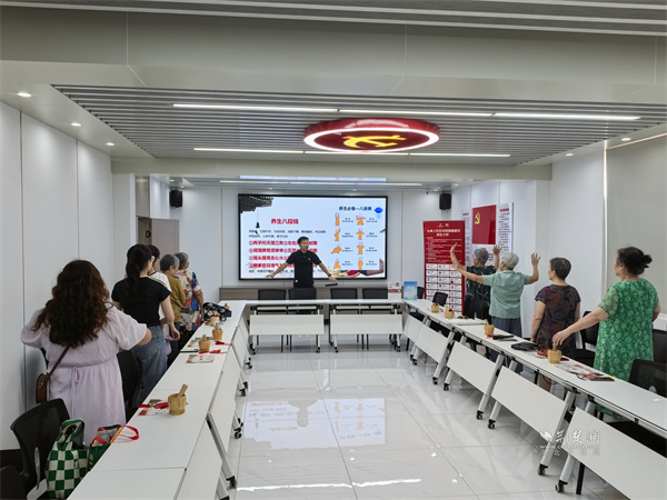 隨后,醫(yī)師帶領(lǐng)居民們學(xué)習(xí)傳統(tǒng)養(yǎng)生功法“八段錦”。伴隨著舒緩的口令,大家認真練習(xí)“雙手托天理三焦”“左右開弓似射雕”等動作,體驗中國傳統(tǒng)運動在調(diào)理氣血、舒緩壓力方面的功效。