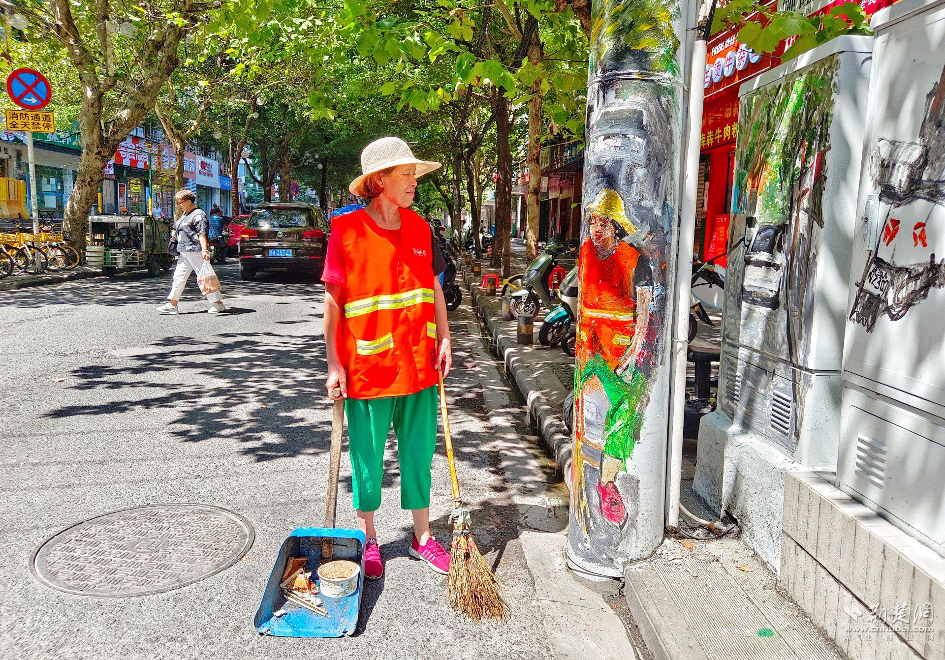 榮華街道的墻繪里,人物最多。環(huán)衛(wèi)工、店主、社區(qū)干部……熟悉的面孔讓居民看了忍不住笑出聲:“這不是我們小區(qū)的老李嘛!”