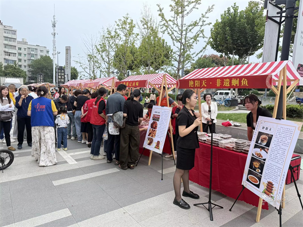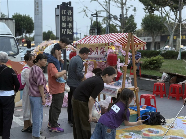 活動現(xiàn)場設置市集區(qū)與演藝區(qū)兩大板塊。市集區(qū)內人頭攢動,轄區(qū)共建單位、音樂企業(yè)與多家商戶積極參與,匯聚特色商品與音樂互動體驗。大音琴行展出多種樂器并銷售音樂周邊產品,吸引眾多武漢音樂學院學生及音樂愛好者駐足交流;元祖食品推出月餅、點心等節(jié)令糕點展銷,為中秋佳節(jié)提前預熱;艷陽天·非遺鮰魚(黃鶴樓店)、中百倉儲、九州上醫(yī)館及多家大成路特色美食商戶也紛紛設點,讓市民在觀賞演出之余,盡享購物與美食樂趣。