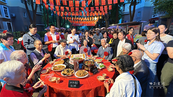 鄰里關(guān)系的升溫,離不開有溫度的聯(lián)結(jié)。如今城市里的單元樓,常隔著“一扇門的距離”,而社區(qū)的百家宴,恰好打破了這份疏離。紅燒排骨、手工餃子、梅菜扣肉,百余道家常菜擺成長(zhǎng)桌,陌生鄰里因一道菜打開話匣子,老街坊借一碗湯嘮起家常;10位高齡老人與祖國(guó)同慶生,全場(chǎng)齊唱的《生日歌》里,藏著對(duì)長(zhǎng)輩的敬重,也裹著“社區(qū)是家”的歸屬感。比起刻意的破冰活動(dòng),這樣帶著煙火氣的相聚,更能讓鄰里情在自然中流淌。