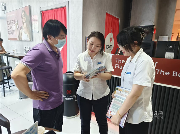 工作人員上門對商戶做政策宣傳。 通訊員供圖