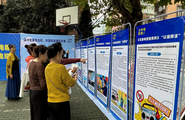 在社區(qū)幸福廣場,一排排科普展板前圍滿居民。展板從無線電基本原理講起,通過“以案釋法”的形式揭露“黑廣播”“偽基站”的詐騙手法,詳細(xì)說明危害與識別技巧,引導(dǎo)居民合法使用頻譜資源。