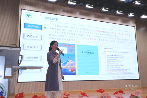 武漢大學附屬外語學校李華藝老師執(zhí)教《水的組成——探秘氫能汽車》展示課。課程以新能源汽車為線索,設計四大項目,學生通過海報、角色扮演等形式展示探究成果。李老師引導學生從宏觀、微觀、符號三重視角認識水的組成,最終用電解產(chǎn)生的氫能讓小車現(xiàn)場行駛,實現(xiàn)化學與科技的有機融合。說課環(huán)節(jié)中,她介紹項目圍繞“氫能汽車如何工作”展開,借助AI模擬生產(chǎn)過程,讓學生感受化學的實踐價值。