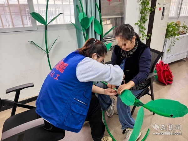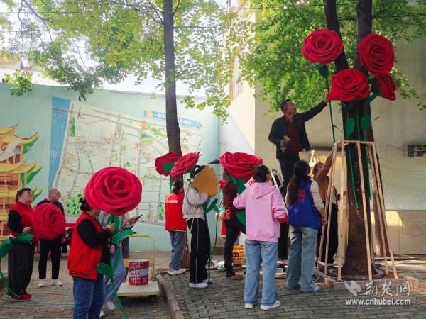 這棵“愛之樹”是街道殘聯(lián)聯(lián)合西廠口社區(qū)開展的“杏運(yùn)相伴,玫好家園”殘健融合公共藝術(shù)共創(chuàng)活動(dòng)的成果,轄區(qū)陽(yáng)光家園學(xué)員、助殘志愿者、居民代表和社區(qū)工作者共同參與,以親手制作的巨型銀杏葉與玫瑰花裝點(diǎn)社區(qū)空間,傳遞“黃鶴樓下是我家”的溫暖。