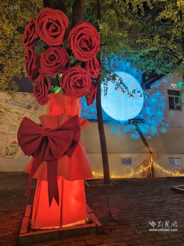 荊楚網(wǎng)(湖北日?qǐng)?bào)網(wǎng))訊(通訊員 陳曉燕 周佳穎)11月5日,武昌區(qū)黃鶴樓街道后宰門街角一道獨(dú)特的風(fēng)景引人注目,一棵“永不凋零”的“愛之樹”絢麗綻放,樹上盛開的巨型玫瑰花與一旁的月球投影裝置相映成趣,與遠(yuǎn)方的黃鶴樓共同構(gòu)成一幅詩(shī)意城市景觀。