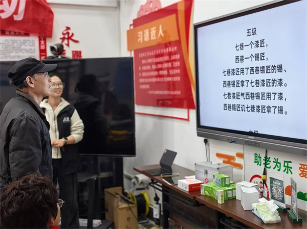 活動(dòng)以繞口令熱身開場(chǎng)。曾講授量子力學(xué)的老教授們,此刻神情專注地逐字讀著"炮兵怕把標(biāo)兵碰",略顯生澀卻認(rèn)真的模樣,引得現(xiàn)場(chǎng)歡笑聲與掌聲不斷,氣氛瞬間活躍起來。