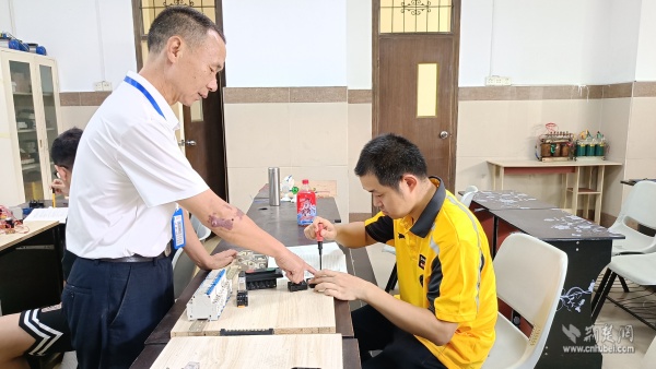 鄂成龍?jiān)谖洳齾^(qū)“新興學(xué)院”進(jìn)行電工學(xué)習(xí)。 通訊員供圖