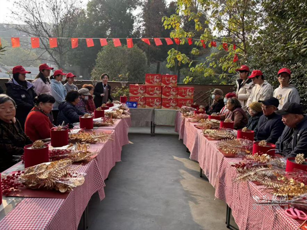 為鍛煉老人動手能力與思維敏捷度,活動設(shè)趣味手工環(huán)節(jié)。老人們在社區(qū)工作人員與武大學(xué)生志愿者指導(dǎo)下,將干花、仿真花細(xì)心插進(jìn)裝飾桶。現(xiàn)場笑聲不斷,老人們舉著作品展示、合影,既收獲成就感,又拉近鄰里距離,傳遞社區(qū)溫情。