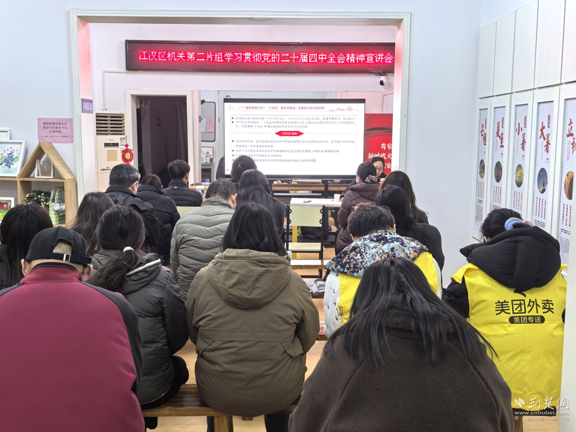 荊楚網(wǎng)(湖北日報網(wǎng))訊(記者 何婧 通訊員 沈力)12月17日,在江漢區(qū)委直屬機關(guān)工委指導(dǎo)下,區(qū)委社會工作部機關(guān)黨支部召集區(qū)直機關(guān)黨建聯(lián)系第二片組單位,聯(lián)合滿春街道肖家社區(qū)黨委,舉辦學(xué)習貫徹黨的二十屆四中全會精神宣講會暨“基層治理 人人有責”專題研討活動。區(qū)人大、區(qū)委組織部等9家成員單位黨員代表,以及新興領(lǐng)域黨員代表齊聚一堂,共學(xué)全會精神、共話治理實踐。