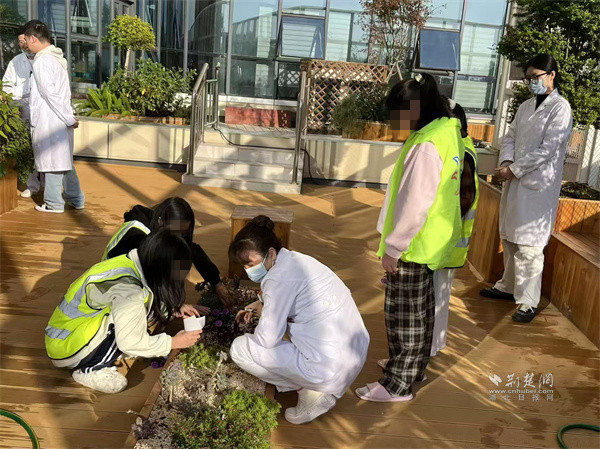 據(jù)介紹,該可食園藝治療項目自2019年起,由醫(yī)院聯(lián)合華中科技大學(xué)建筑與城市規(guī)劃學(xué)院共建,圍繞“視、聽、嗅、觸、味”五感體驗設(shè)計系列活動,涵蓋薄荷扦插、蔬菜盆栽、葉壓畫、果蔬沙拉制作等豐富內(nèi)容。