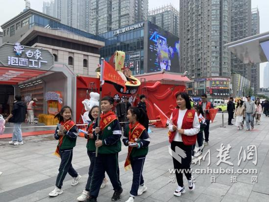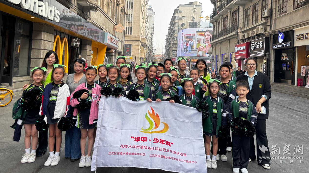 一群孩子站在老建筑前,用并不稚嫩的語氣講述城市的過往;他們談江漢關(guān)、談中山大道,也談這片街區(qū)如何一步步走到今天。聽眾中有游客,有商戶,也有在這里生活了幾十年的老人。