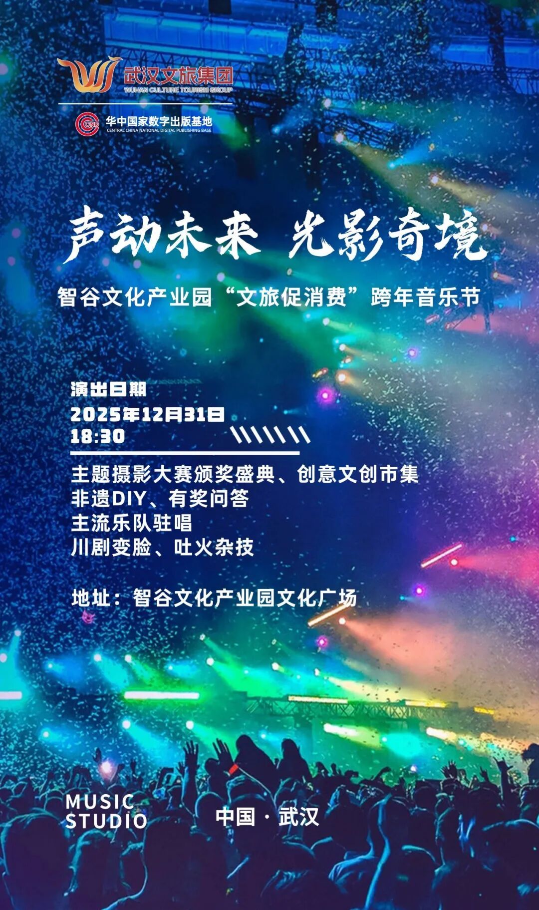 12月31日,“聲動(dòng)未來·光影奇境”2026“文旅促消費(fèi)”跨年音樂節(jié)將在智谷文化產(chǎn)業(yè)園舉行。來智谷跨年,不僅可以逛“文創(chuàng)+年貨市集”,體驗(yàn)非遺手藝、傳統(tǒng)小吃、潮玩好物,還可以伴隨小提琴演奏、搖滾樂隊(duì)演出、舞蹈、川劇變臉等精彩節(jié)目一起迎接2026年。