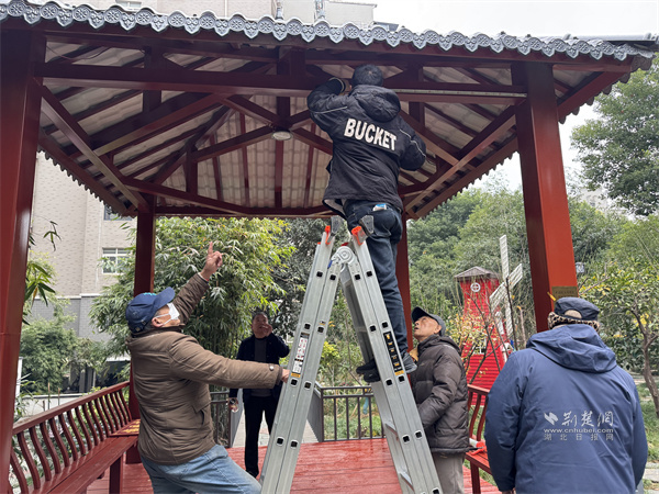 從亭體翻新、配套欄桿更換到照明設(shè)施增設(shè),經(jīng)過(guò)大家共同努力,危亭徹底舊貌換新顏。居民們商議后,為新亭取名“梅園亭”。如今,翠竹紅梅掩映下的梅園亭外觀靚麗,兼具實(shí)用與安全,成為小區(qū)里的亮眼風(fēng)景?!耙院笤谶@兒歇腳聊天,吹不著曬不著,太舒心了!”居民們圍坐閑談,愜意不已。