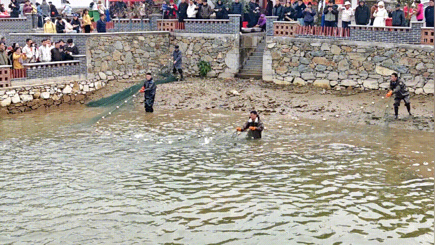 村民們拉動手中的漁網(wǎng),平靜的水面頓時沸騰,魚兒打滾撒歡。圍觀人群爆發(fā)出陣陣歡呼,伴隨著攝影師們快門的咔嚓聲,這一鄉(xiāng)村傳統(tǒng)捕魚場景被定格在許多游客的手機屏幕中。